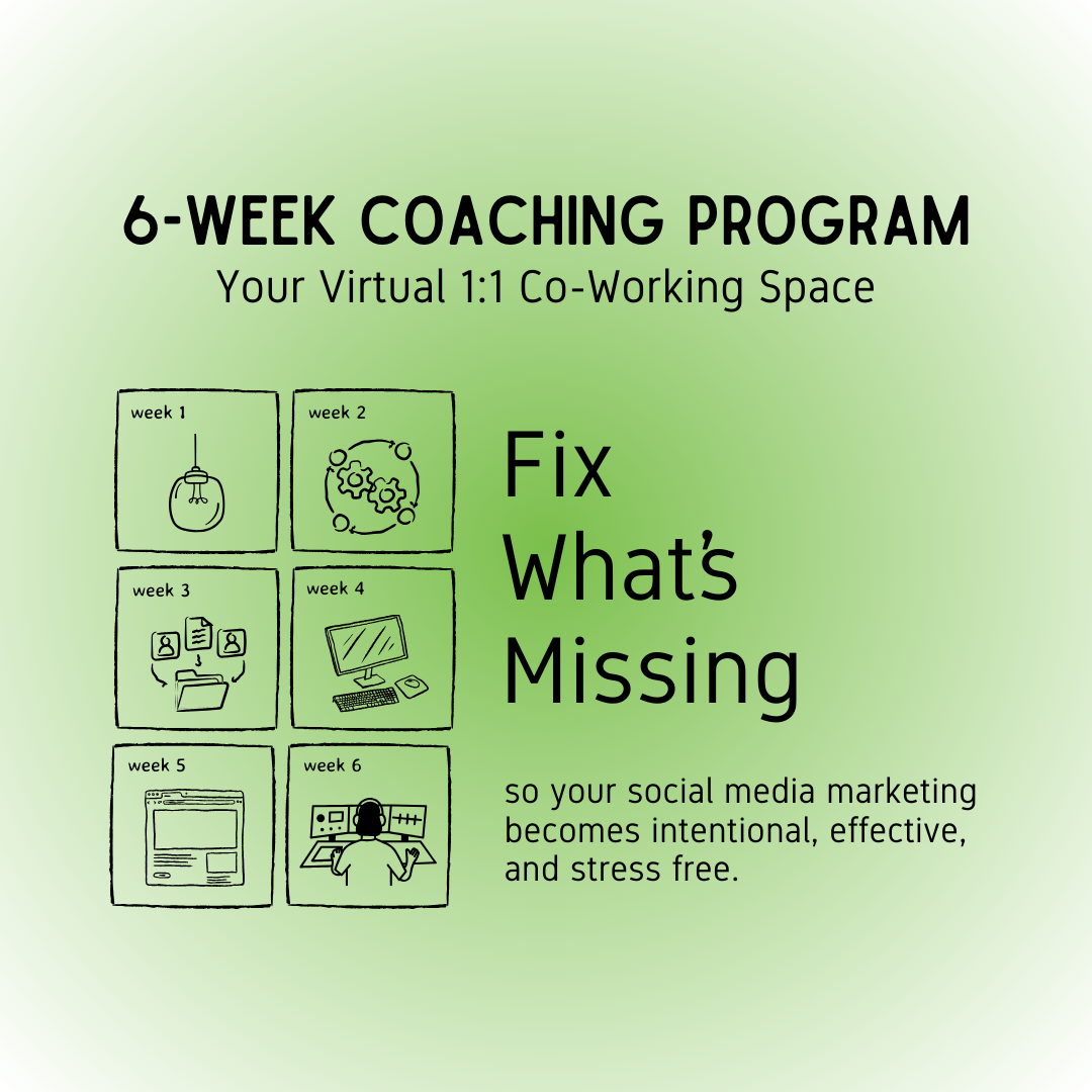 Ideal for: service-based solopreneurs who are tired of figuring out their social media marketing alone and seeking structure and accountability.